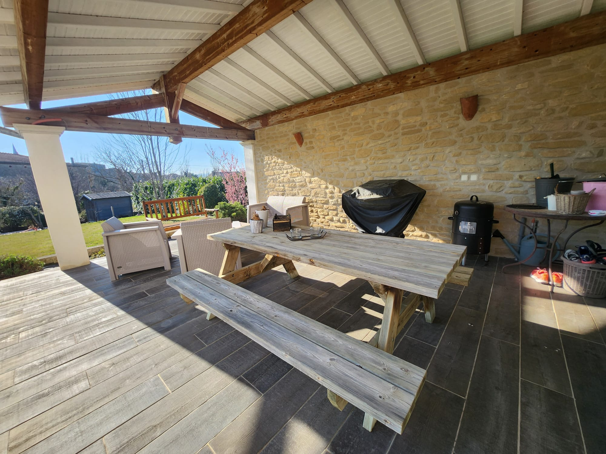 Dès les premiers instants, le niveau de qualité et le soin apporté aux finitions séduisent. Construite en 2010 avec des matériaux haut de gamme, la maison associe ossature brique +isolation monobloc, isolation performante des combles en ouate de cellulose, menuiseries soignées et de qualité, portes en bois exotique et toiture Omega 10. Chaque détail a été pensé pour offrir confort, esthétisme et performance énergétique de très hauut niveau.