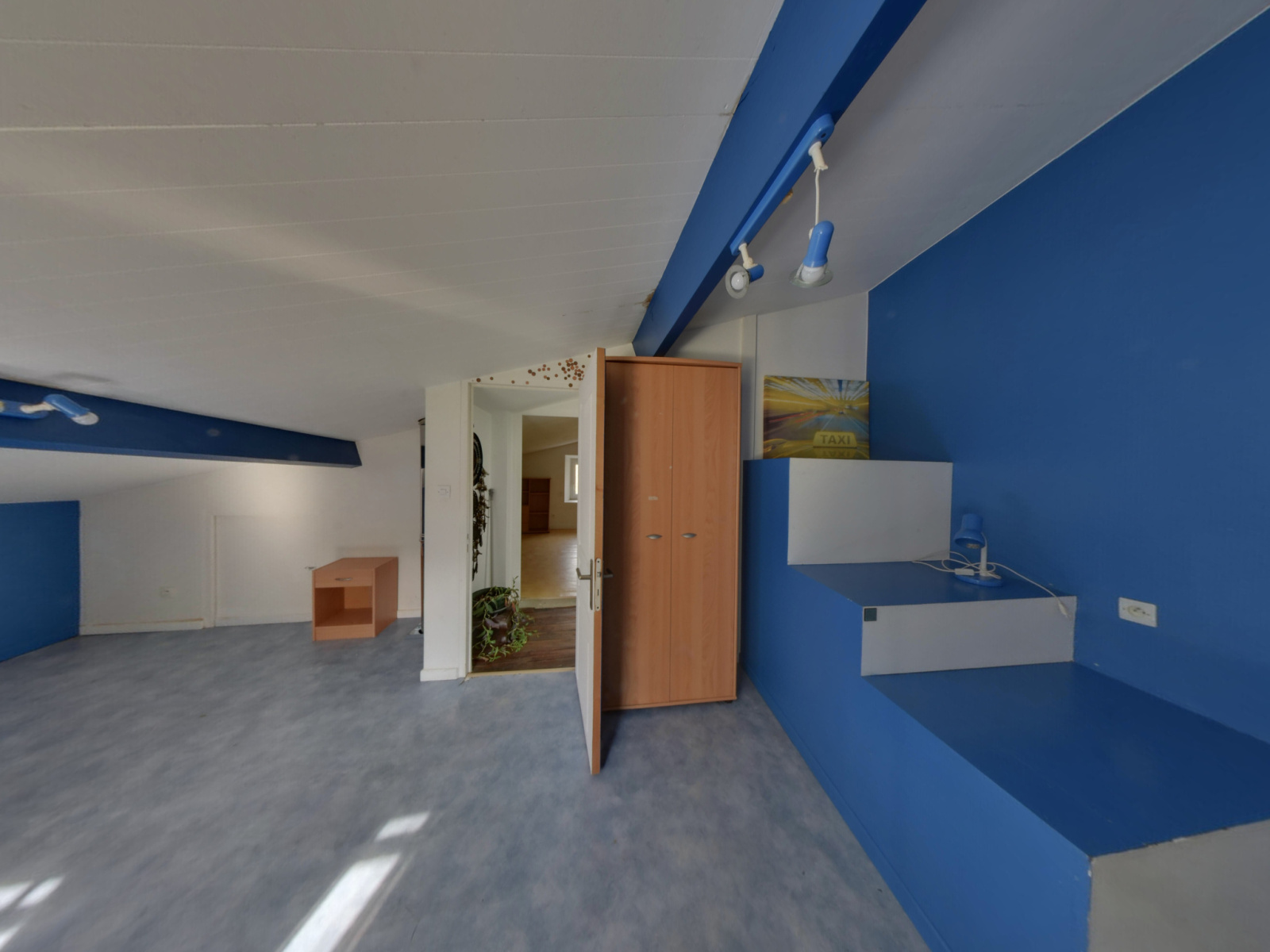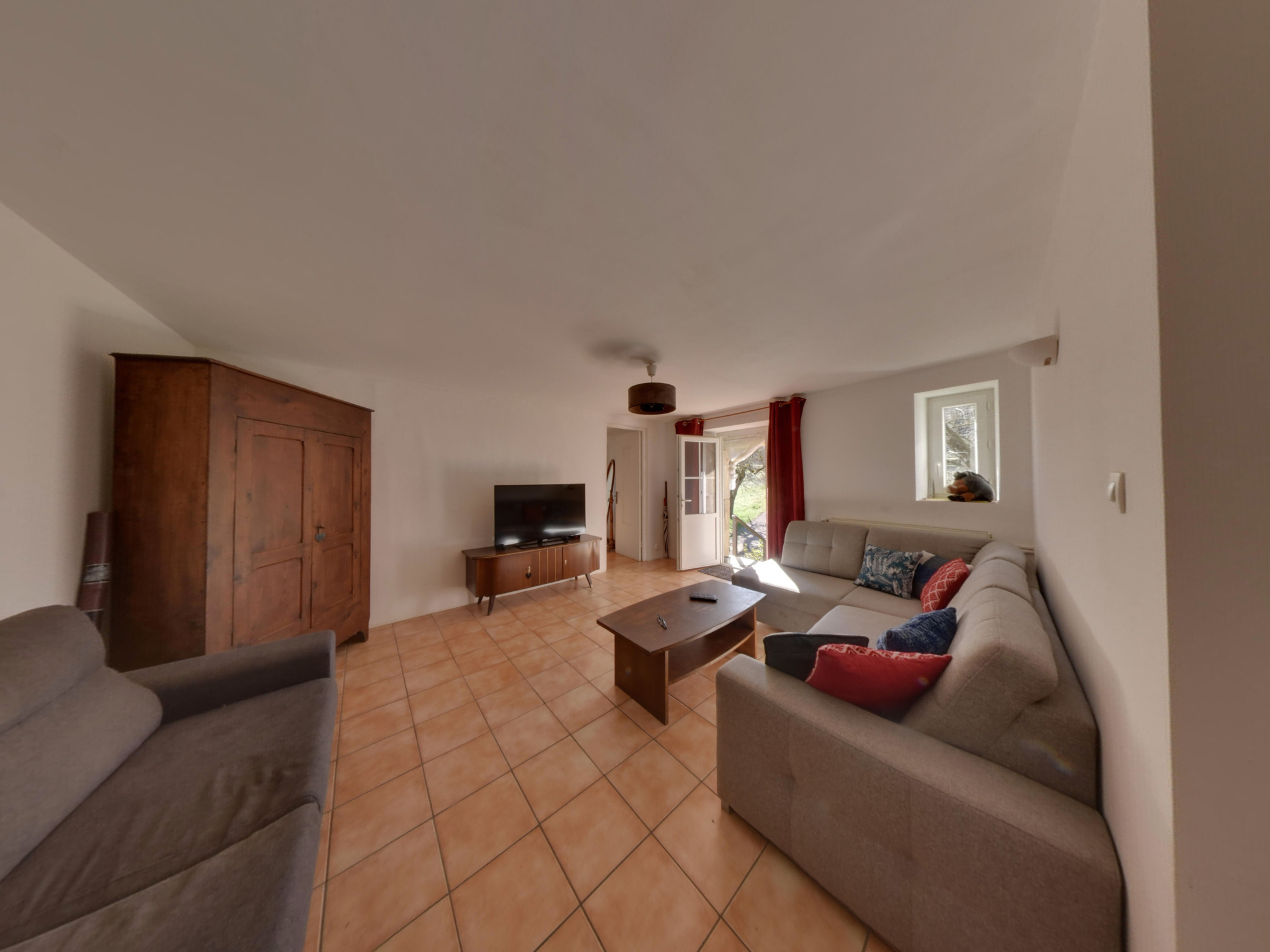 Premier étage : un grand salon et deux chambres..