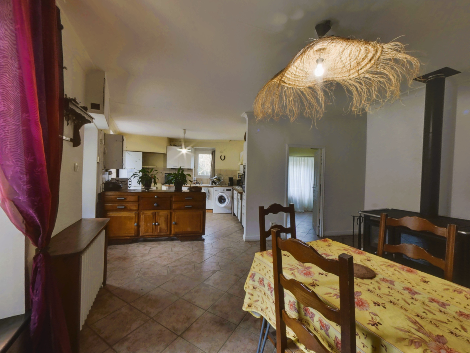 Le chauffage est assuré par une cuisinière à bois, apportant chaleur et authenticité. La maison a bénéficié de rénovations récentes, permettant une utilisation confortable et fonctionnelle.